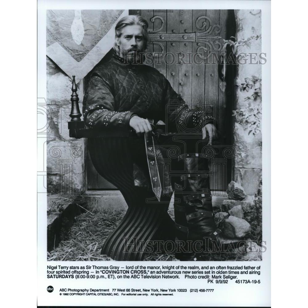 Set in an era more than 600 years ago, "Covington Cross" features storylines filled with action, drama and romance. Sir Thomas Gray (Nigel Terry), Lord of Covington Cross Castle, is not only the guardian of his family, but also a protector of the community. "Covington Cross," the new one-hour family action/adventure series airing on ABC Saturdays at 8:00 pm (ET/PT), is produced by Gil Grant Productions in association with Reeves Entertainment and Thames Television International. Photo is dated 8-19-1992.